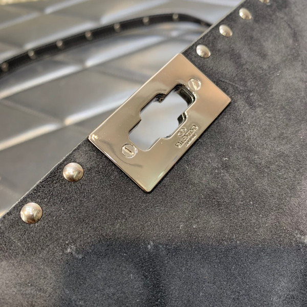 VALENTINO ROCKSTUD SPIKE SHOULDER BAG IN CRACKLE-EFFECT METALLIC