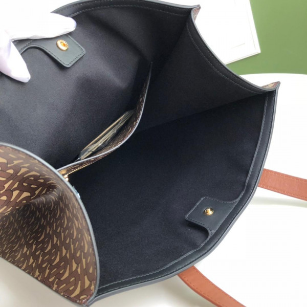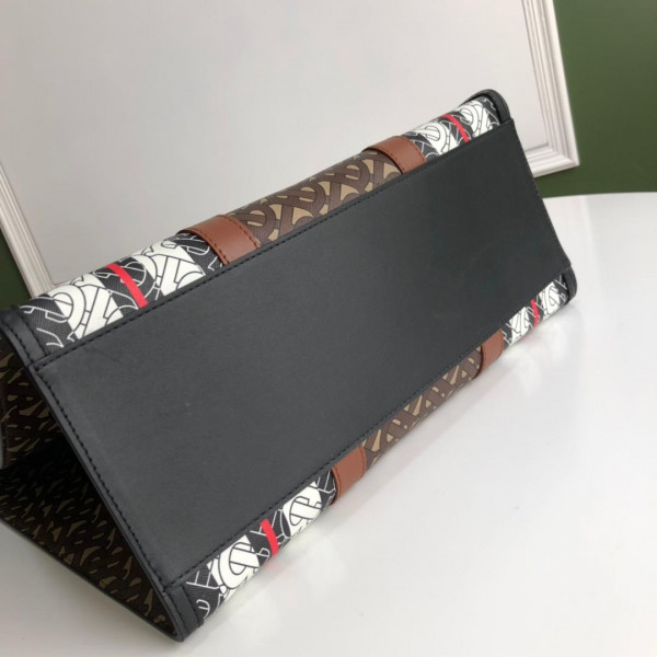 BURBERRY TMONOGRAM STRIPE PRINT E-CANVAS PORTRAIT TOE BAG